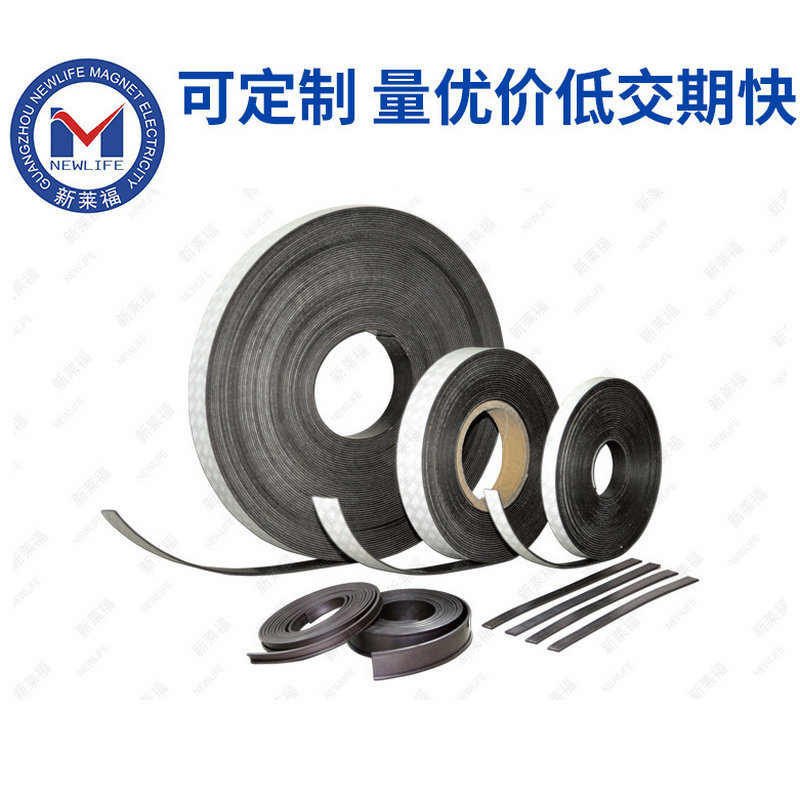 橡膠磁條具有柔韌性、彈性、可繞曲性,經(jīng)過擠出、壓延、注射、模具成型等工藝可生產(chǎn)成卷狀、片狀、條狀、塊狀、圓環(huán)及各種復(fù)雜形狀。它表面還可以覆PVC片、銅版紙、雙面膠,涂UV油,或者彩印模切成各種形狀。